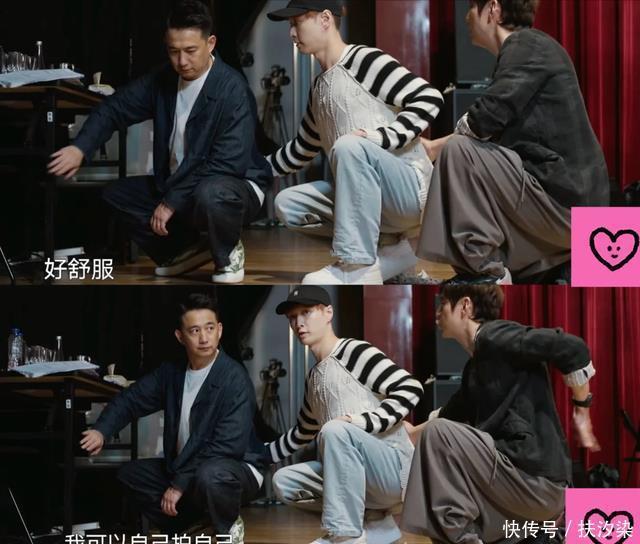 腰部的酸痛僵硬,让黄磊的脸上没什么笑意。 尽管如此,他还要假装坚强。 在张艺兴问他们是不是在练蛤蟆功时,表演了一段青蛙跳。